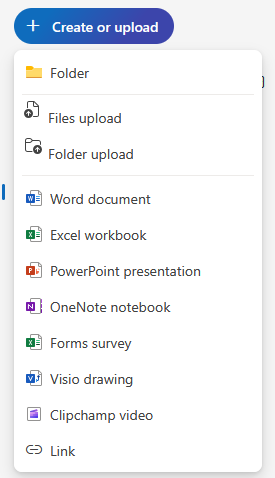 - Create a new file: You can select from options like a Word document, Excel Workbook, or PowerPoint presentation.