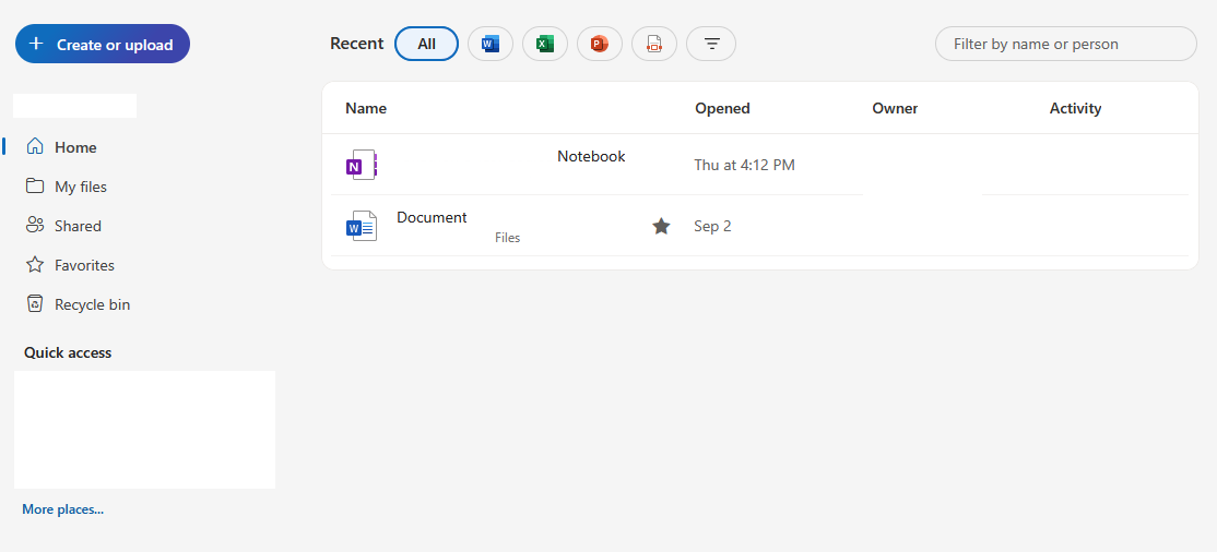 - Home: This is a shortcut to your most recent and frequently used files.