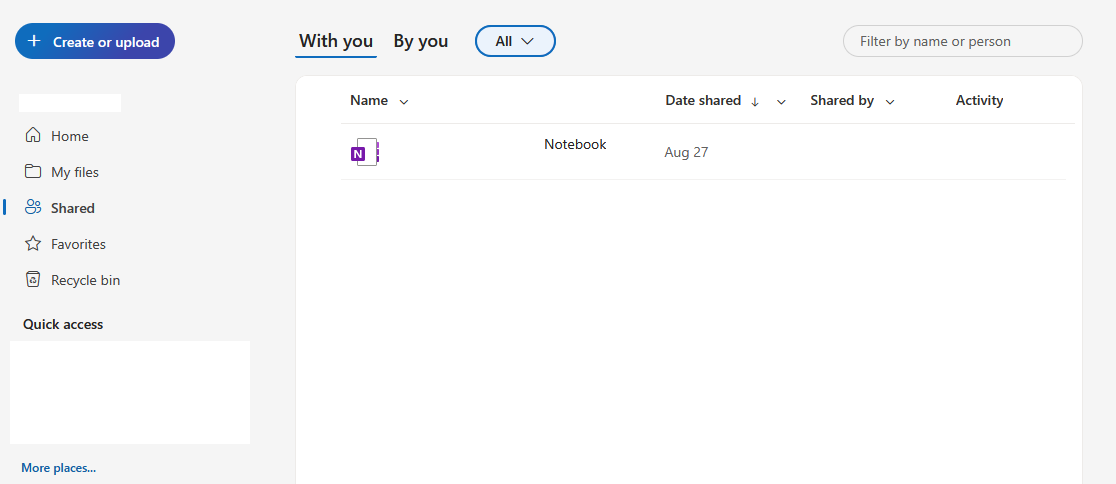- Shared: Here you can find files and folders that have been shared with you by other users.