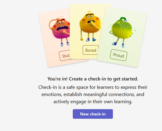 - New Check-in: Use the button in the upper-right corner to create a new question for your students. These questions are designed to check in on your students' well-being and provide an opportunity for them to share their feelings.