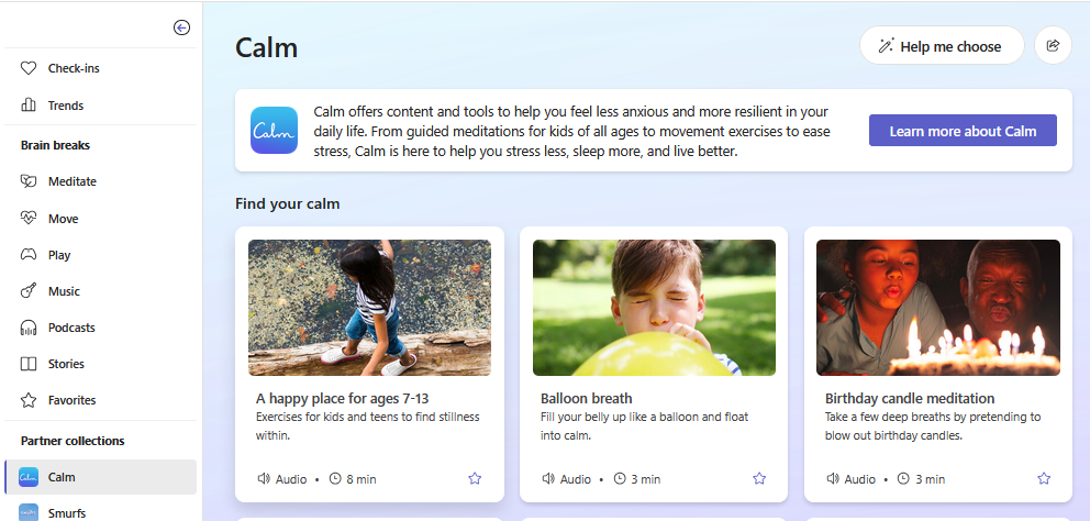 - Partner Collections: Access themed check-in questions provided by Microsoft partners like Calm and Smurfs. Partner Collection allows for a quick way to access questions curated by Microsoft partners for different topics or moods.