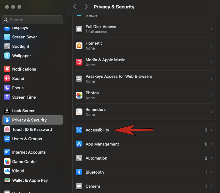 - Scroll down the left menu and select the Privacy & Security section(Figure 1).